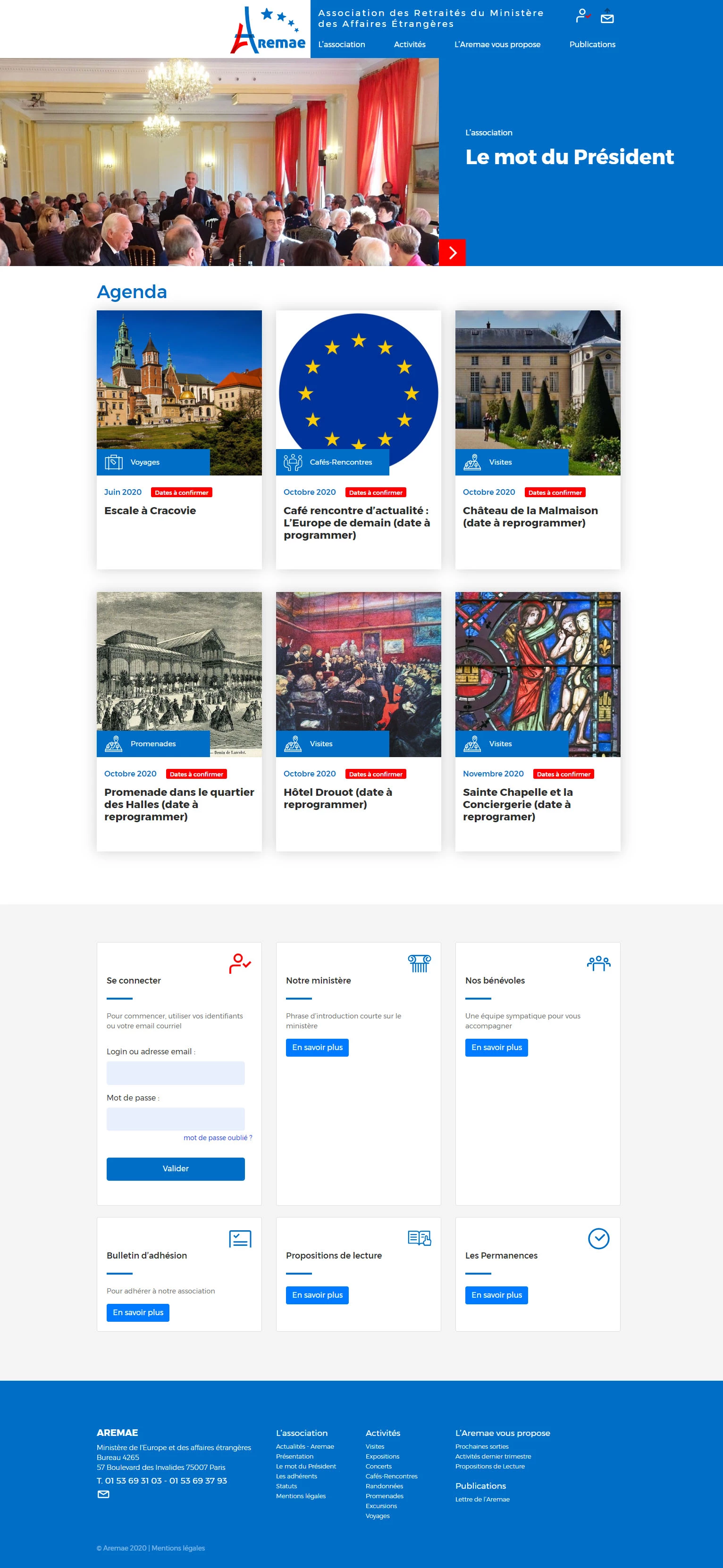 Conception du nouveau site internet de l’Association des Retraités du Ministère des Affaires Étrangères (AREMAE) https://www.aremae.com