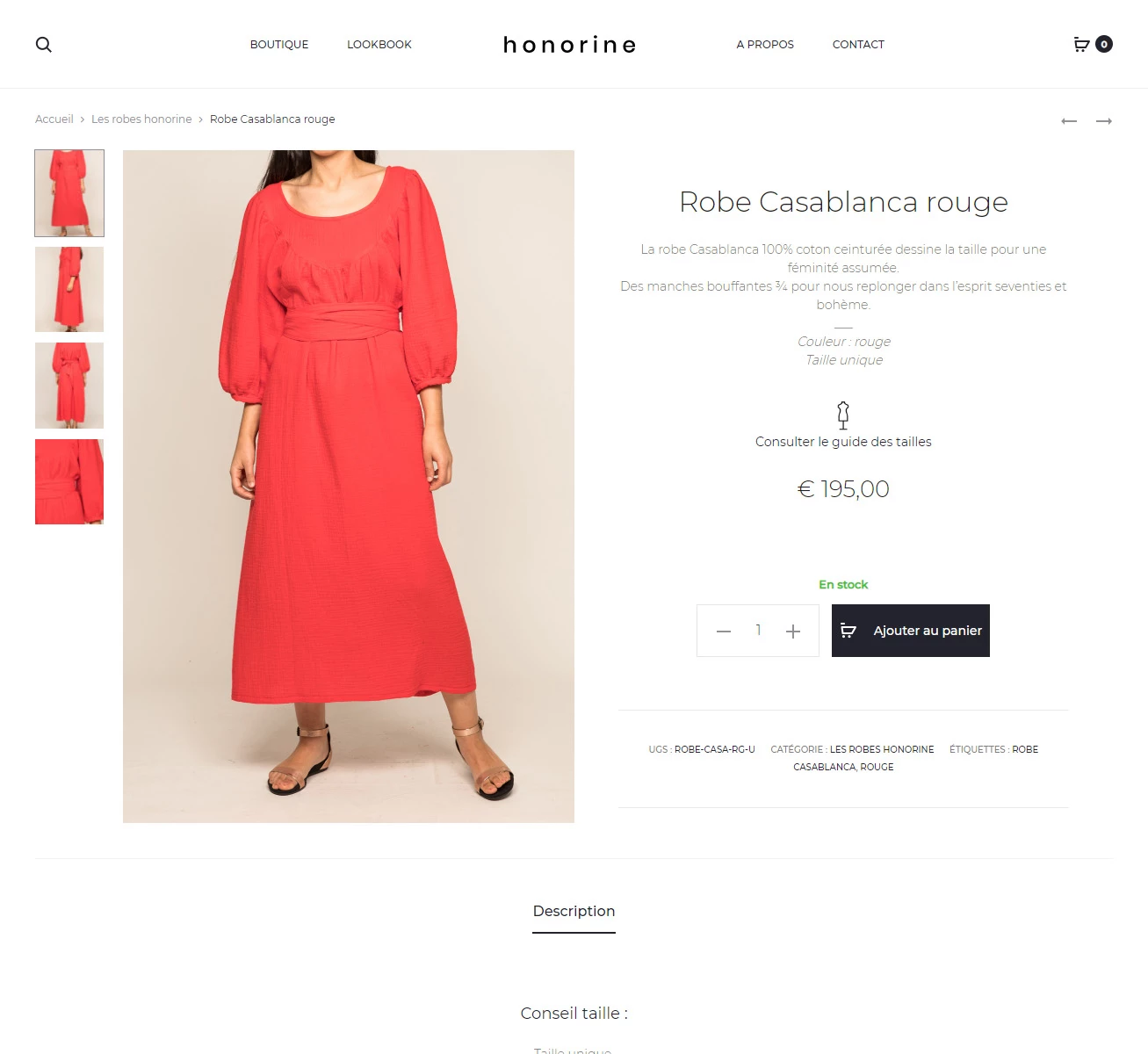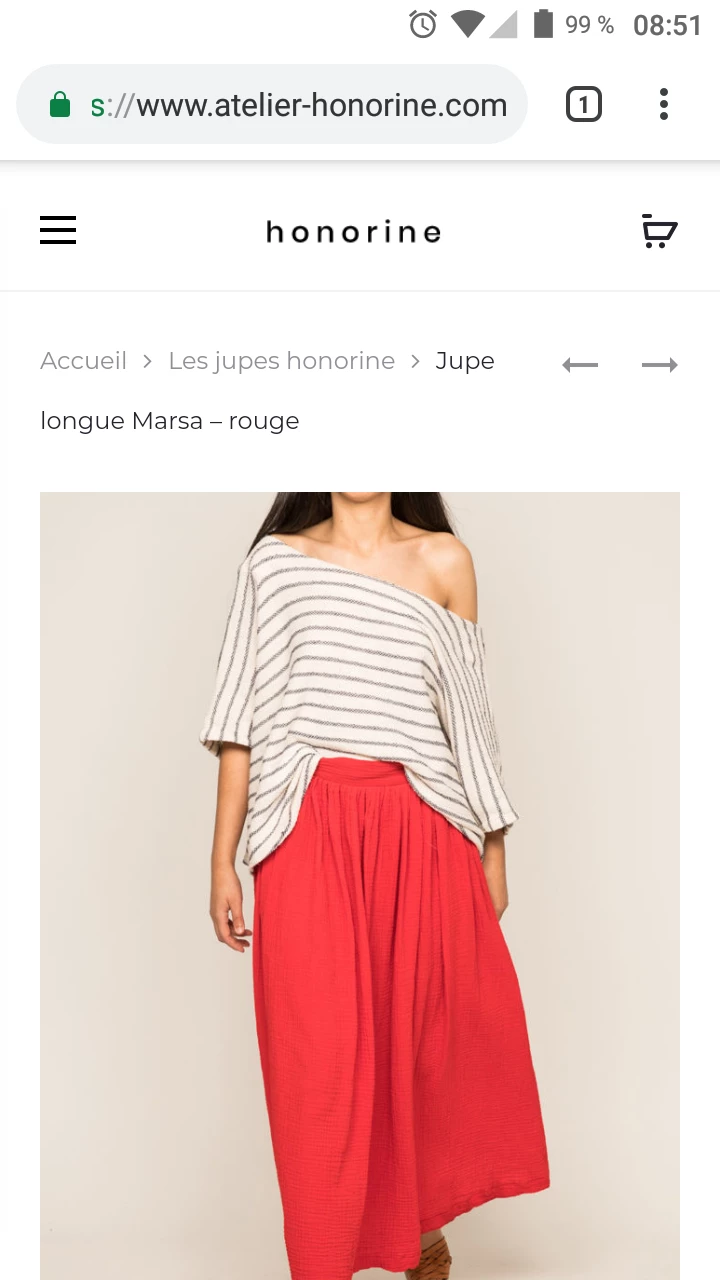 Page produit d’Honorine sur smartphone (Mars 2019)