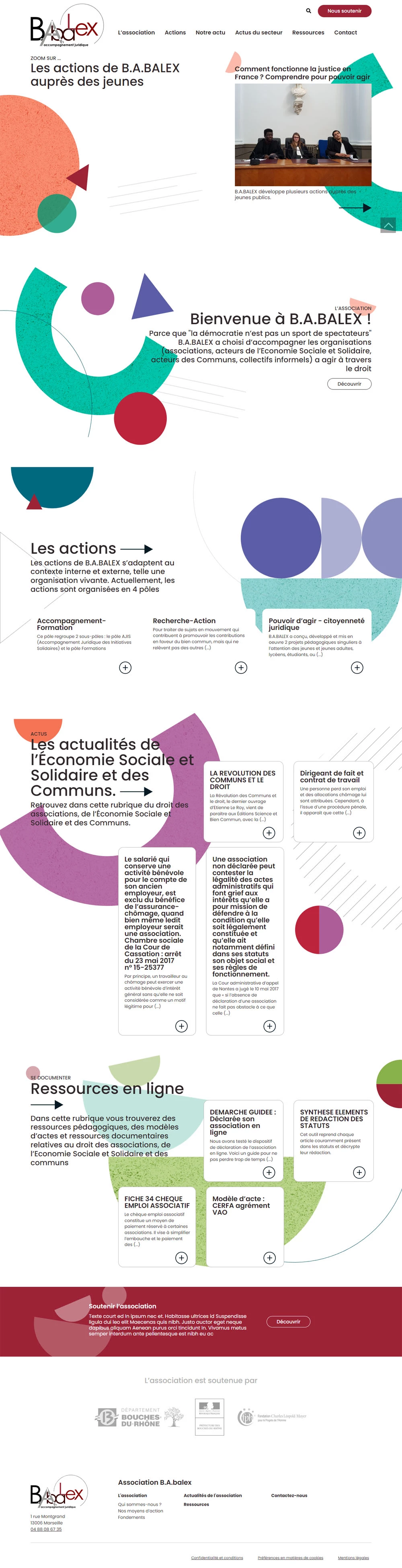 Création de la nouvelle version du site Internet de l’association "B à Ba" Lex basée à Marseille qui accompagne juridiquement les acteurs collectifs et des structures de l’économie sociale et solidaire (ESS).