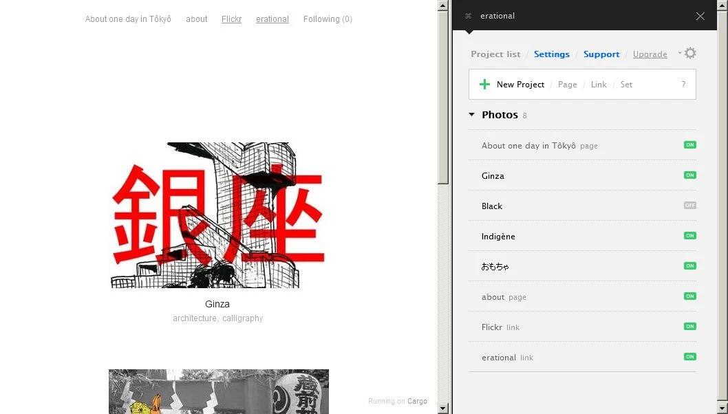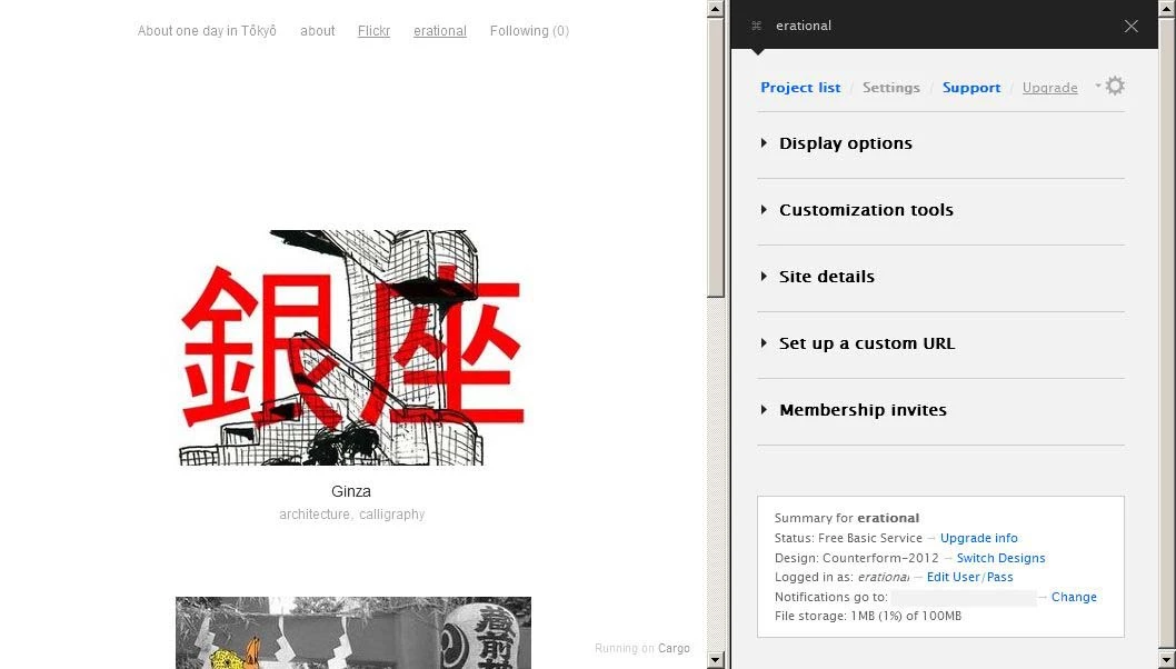 Cargocollective est une plateforme qui permet à des artistes, photographes, architectes de publier leur portfolio simplement et d’une façon élégante. Techniquement, la plateforme offre les même fonctionnalités que le logiciel vieillissant indexhibit avec un hébergement dans le cloud et surtout une série de thèmes graphiques avec élégant et optimisé mobiles (responsive design).