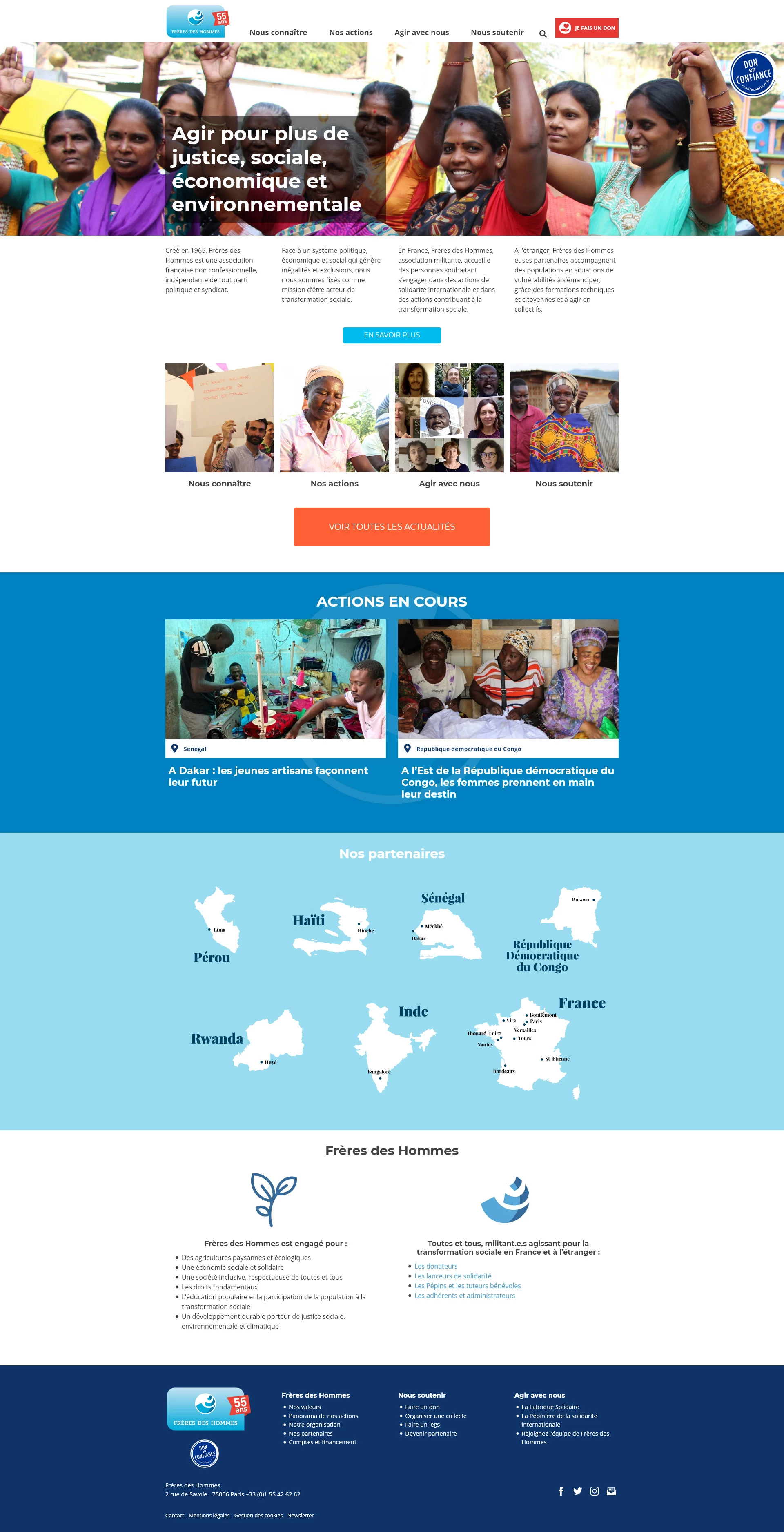 La dernière version du site de Frères de Hommes datait de 2015. Il était nécessaire de refondre le site pour intégrer les nouvelles pratiques du web, les nouveaux objectifs de l’association tout en conservant les contenus existants. et les fonctionnalités de la plateforme.