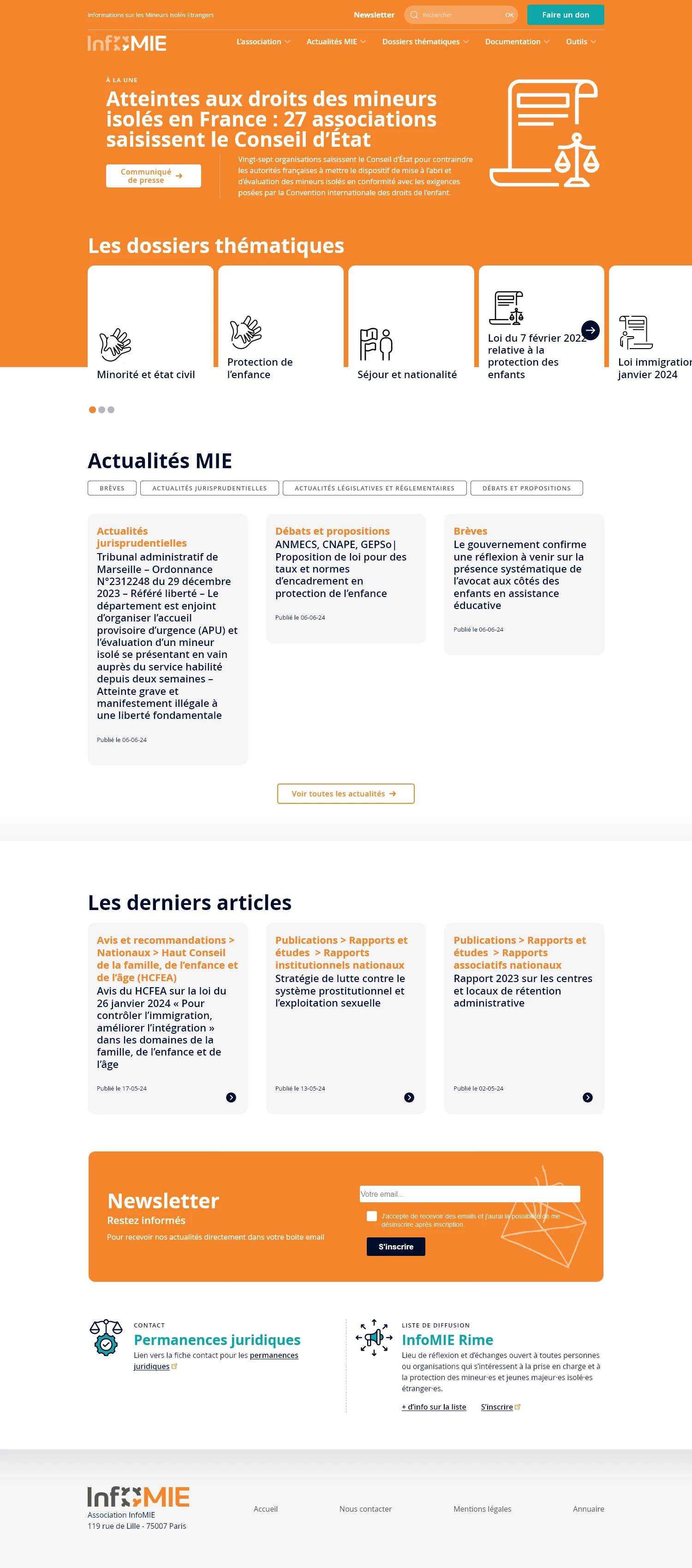 InfoMIE est une association ressource qui fournit une veille et une base juridique pour les Mineurs Isolés Étrangers en France. Elle regroupe des juristes, des militants et des associations sur tout le territoire.