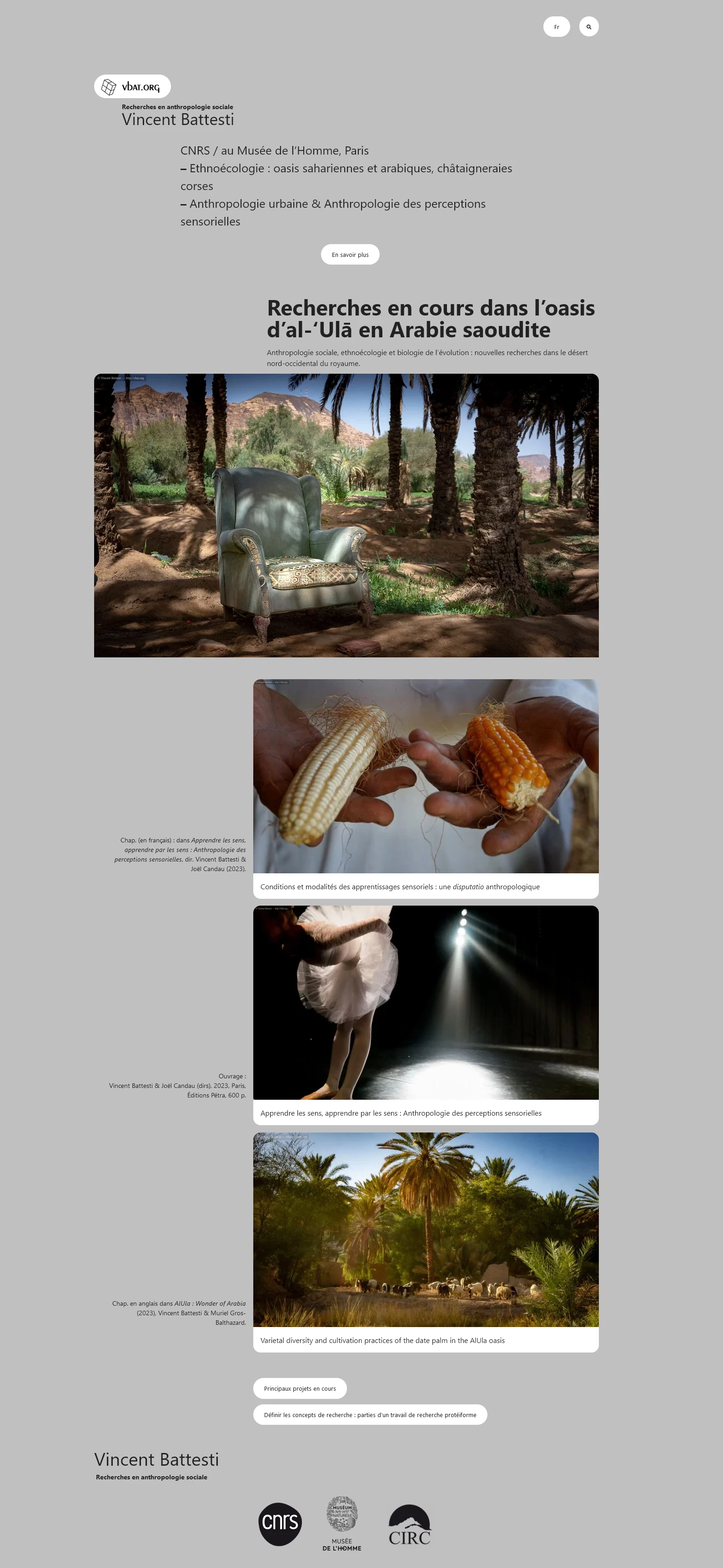 Refonte du site du chercheur en anthropologie sociale, Vincent Battesti (CNRS / Musée de l’Homme).