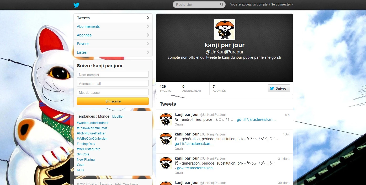Le robot reprend le kanji du jour du site http://www.go-i.fr pour le publier sur twitter
